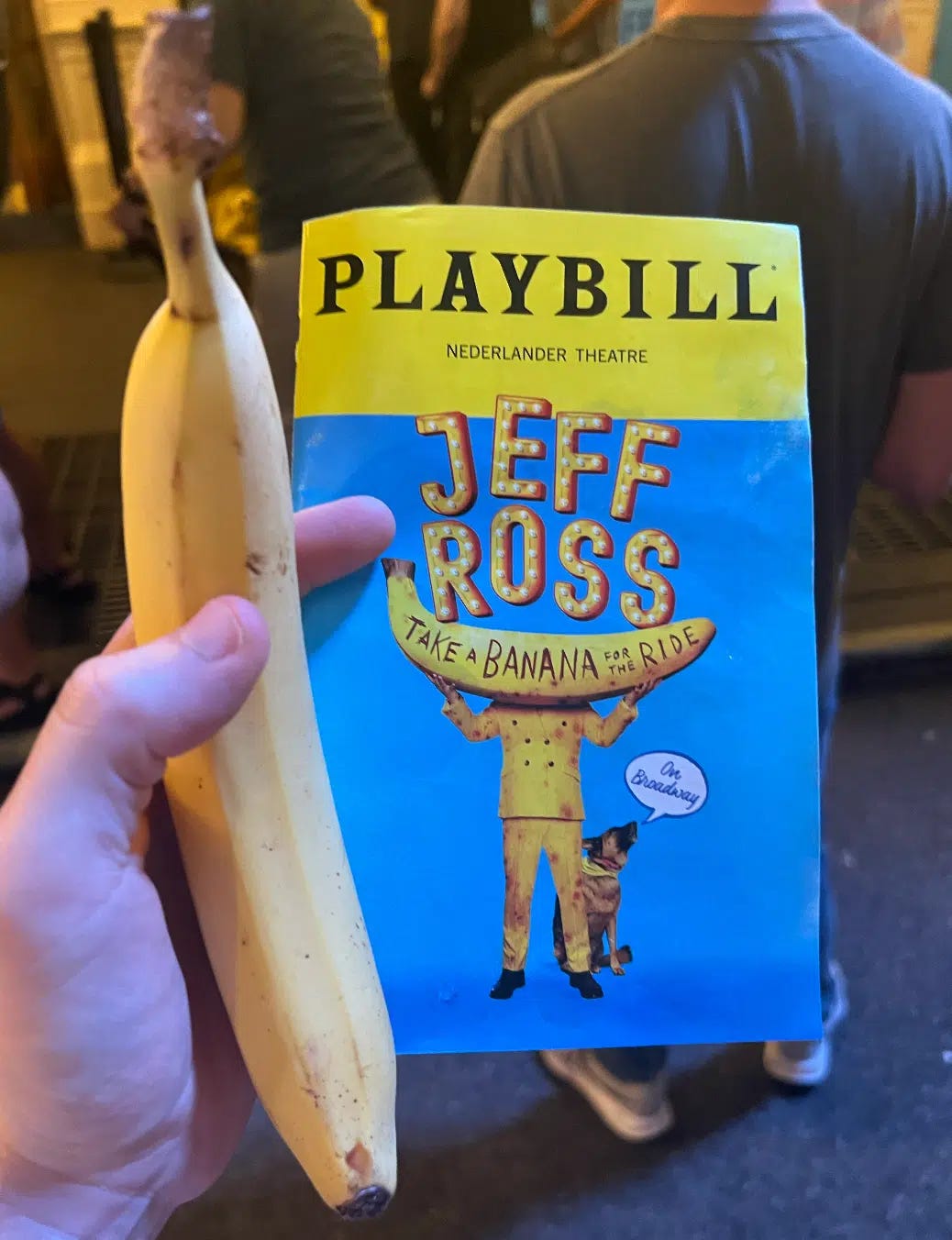 But I was wrong. “Take a Banana for the Ride” isn’t just a comedy show. It’s 80 minutes of tightly-crafted transformation that earns its Broadway spectacle. Ross offers a raw meditation on love, loss, and the resilience that comes with surviving more than your share of tsuris. What emerges is deeply moving, surprisingly tender, and yes, very funny.